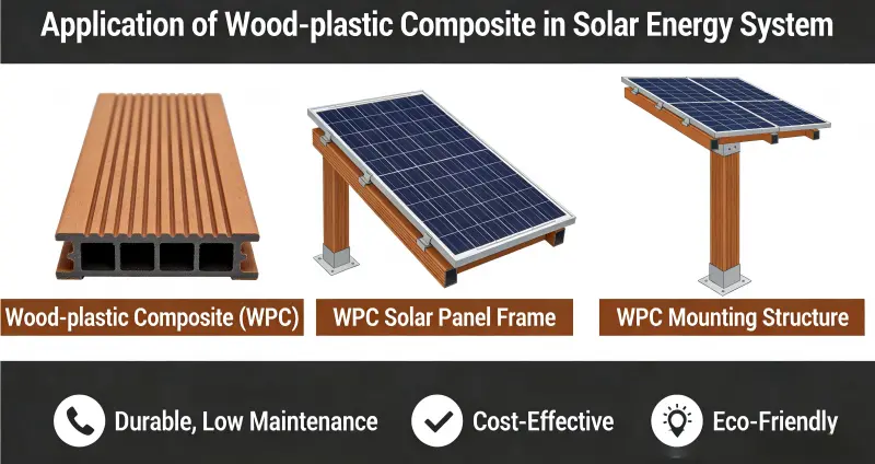 Tá ilchodach adhmaid-plaisteach (WPC) tagtha chun cinn mar phríomhábhar i gcórais fuinnimh gréine, lena n-áirítear gléasanna fótavoltach (PV), stáisiúin chumhachta ar snámh, comhtháthú foirgneamh PV, agus stóráil cumhachta gréine tiubhaithe (CSP), mar gheall ar a n-airíonna cairdiúla don chomhshaol, resistant aimsir, éadrom, ísealchothabhála, agus éasca le próiseáil. Tá sé ag athsholáthar ábhar miotail agus adhmaid traidisiúnta de réir a chéile.
